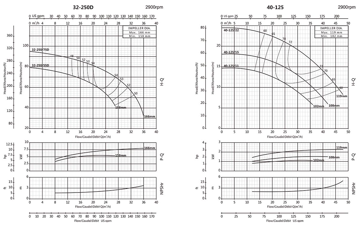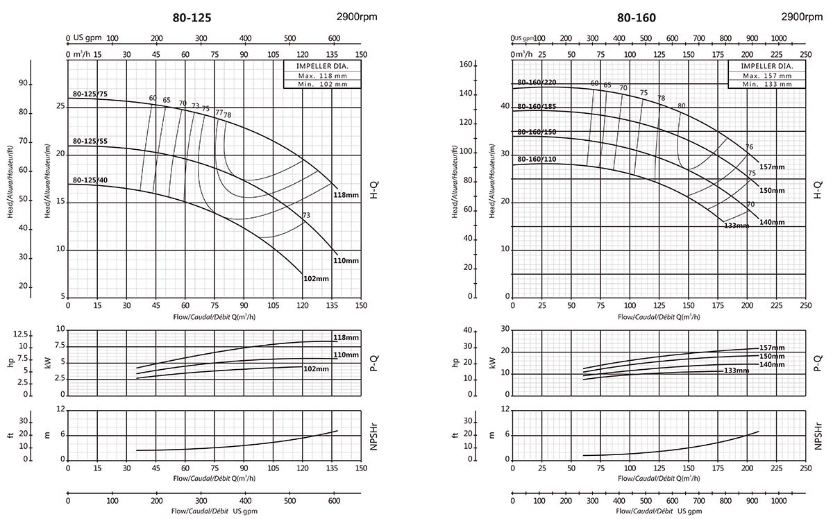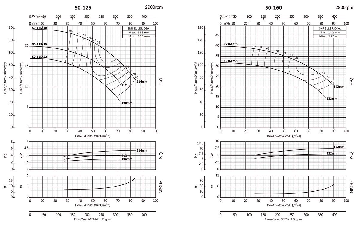 | XA80-125/40 | 100x80 | 122 | 4 | 5.5 | 17 | - | - | - | - | - | - | - | - | 16.5 | 15.9 | 14.3 | 13.5 | 11.6 | 10 | 7.5 | - | - | - |