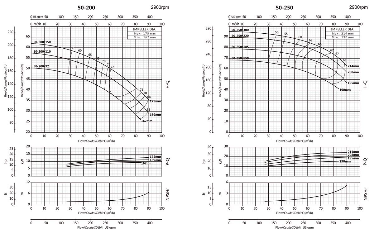 | XA 50-250 / 220 | 65x50 | 250 | 22 | 30 | 89.5 | - | - | - | - | - | - | 86 | 85.3 | 84 | 81.5 | 73.5 | 63.5 | 57 | - | - | - | - | - |